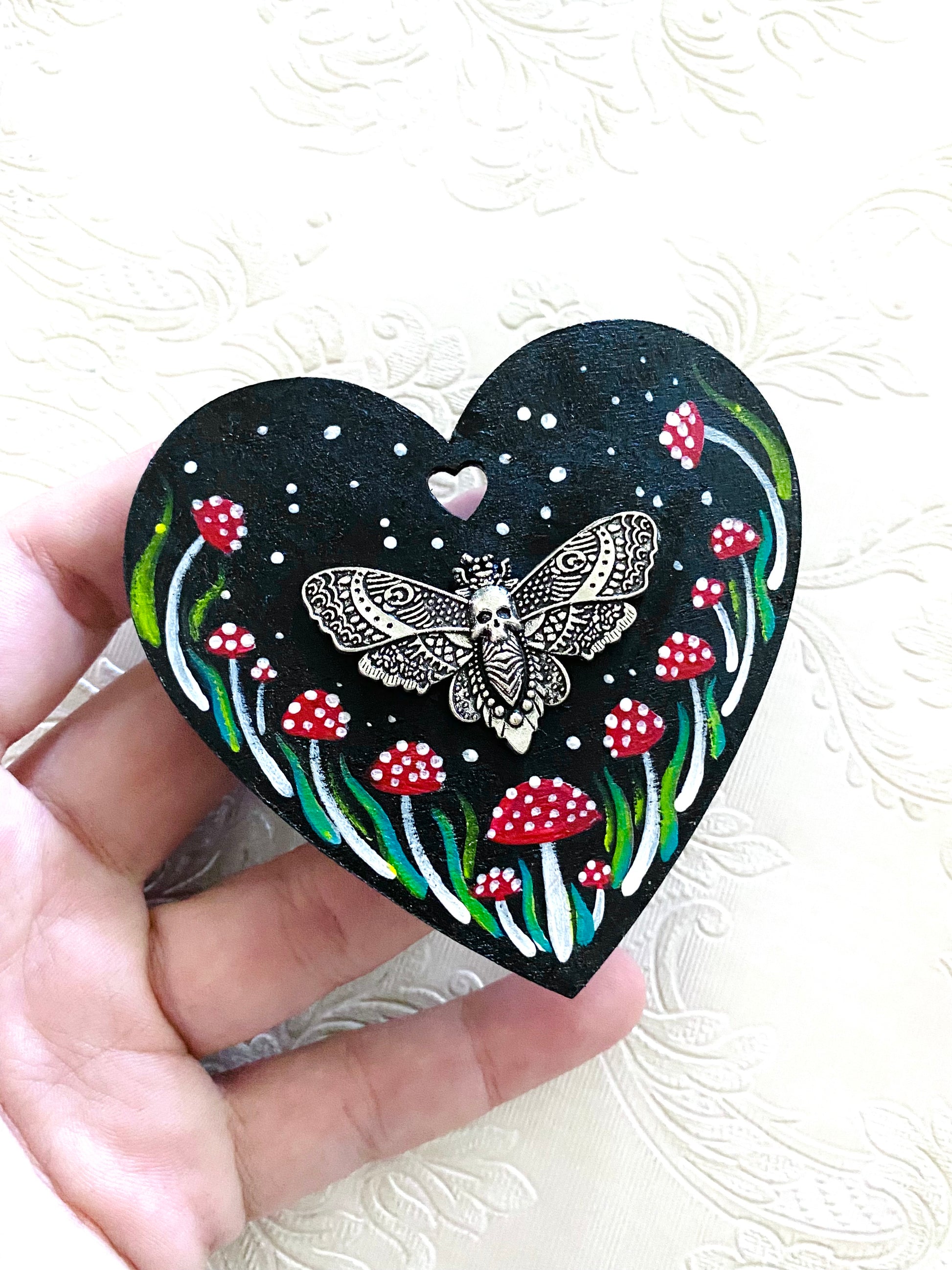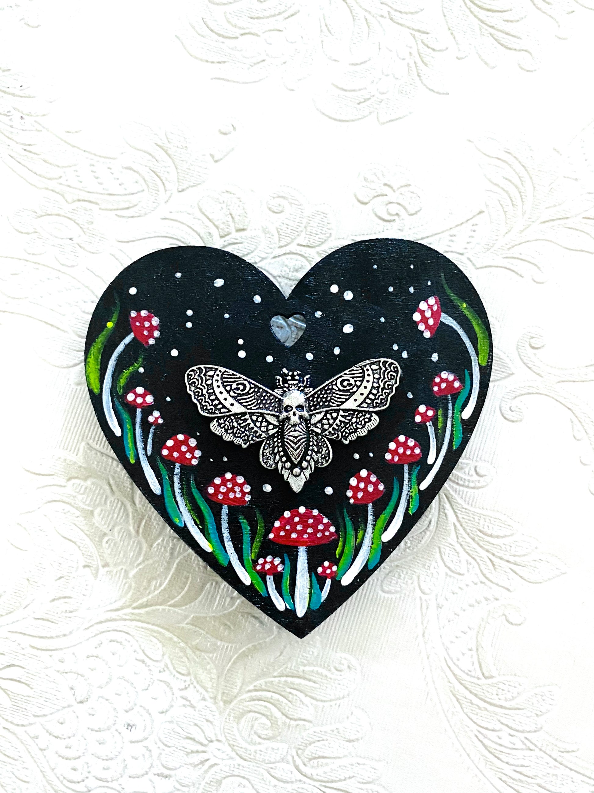 Handbemalter Mottenherzmagnet / Kézzel festett pillés szívecske mágnes