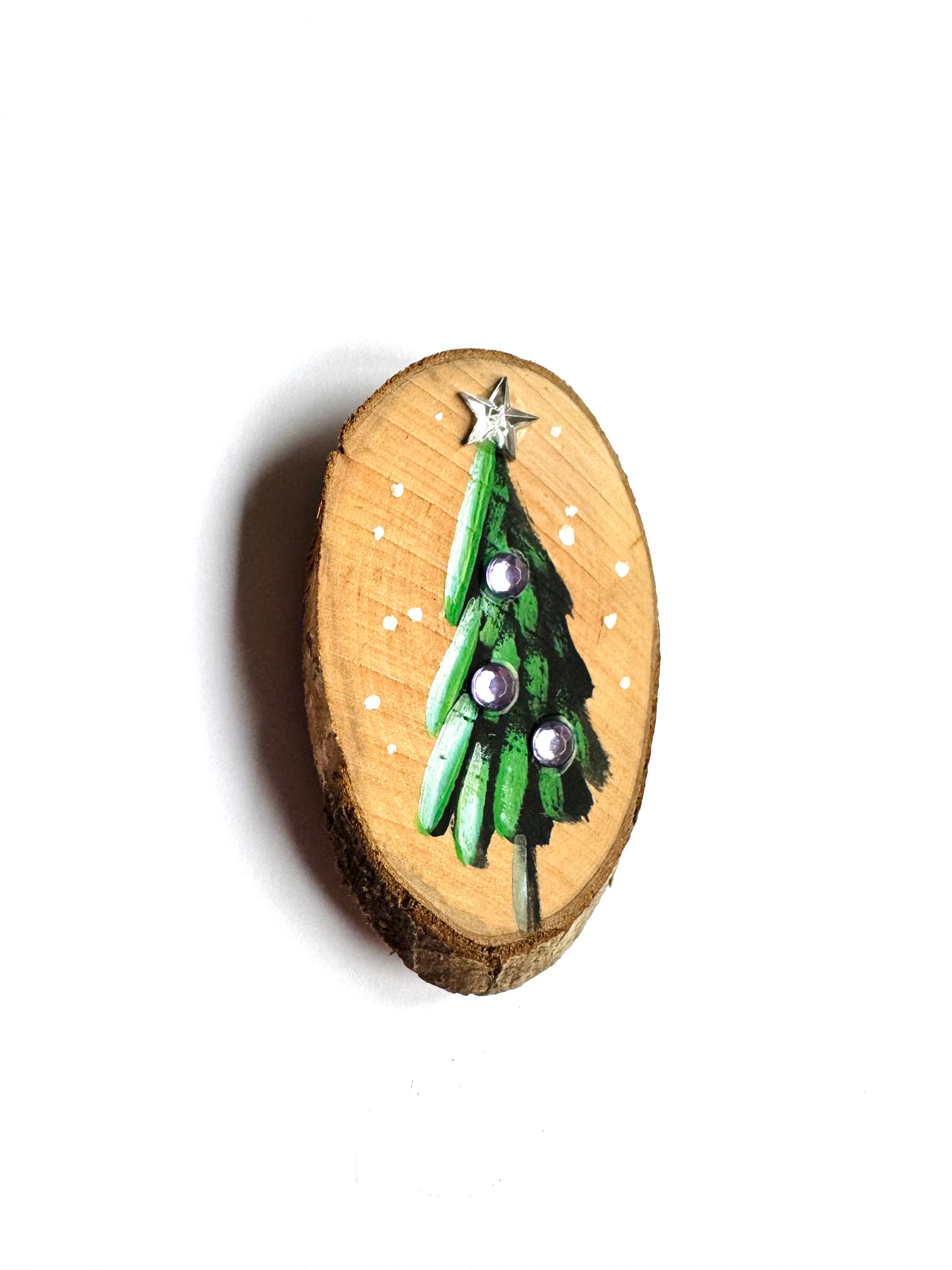 Hand-painted small Christmas tree MAGNET / Kézzel festett kicsi karácsonyfa fakorong MÁGNES