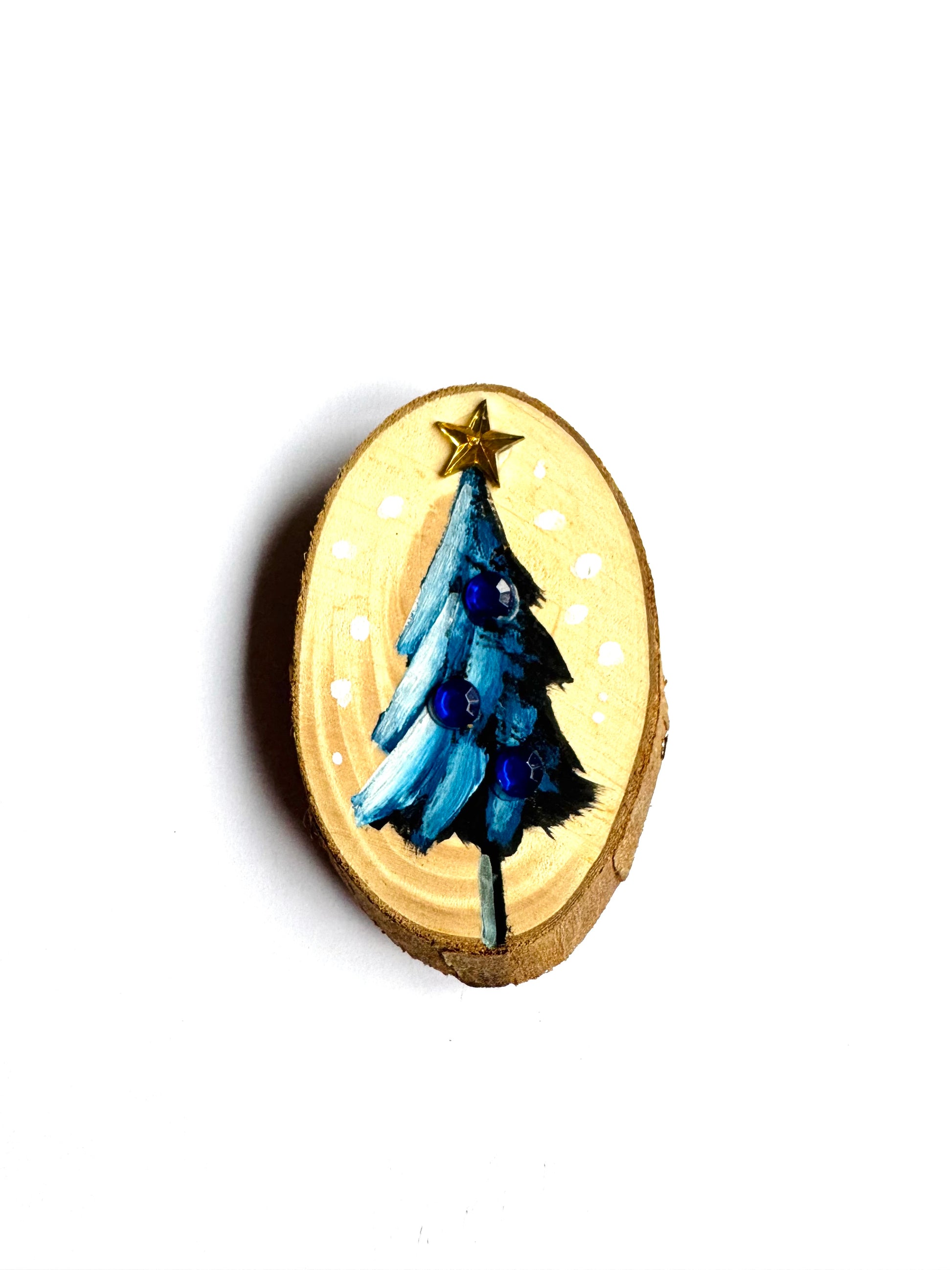 Hand-painted small Christmas tree MAGNET / Kézzel festett kicsi karácsonyfa fakorong MÁGNES