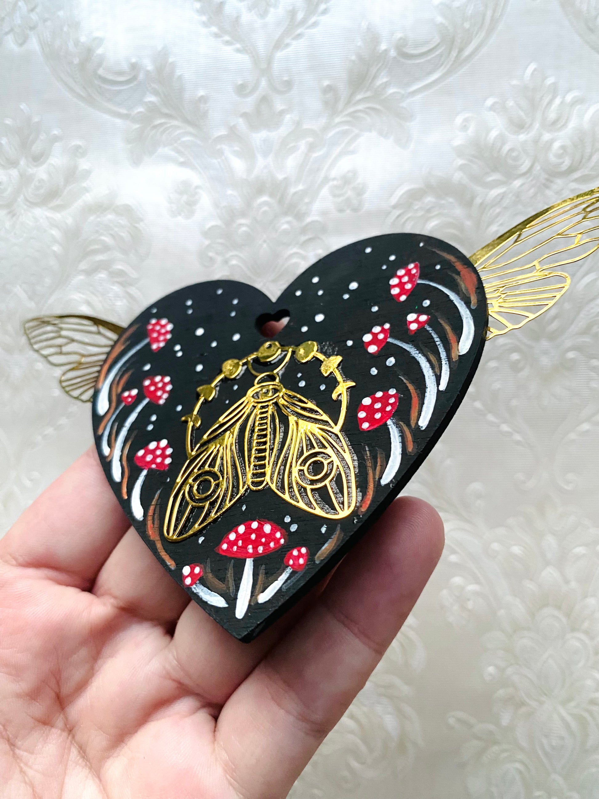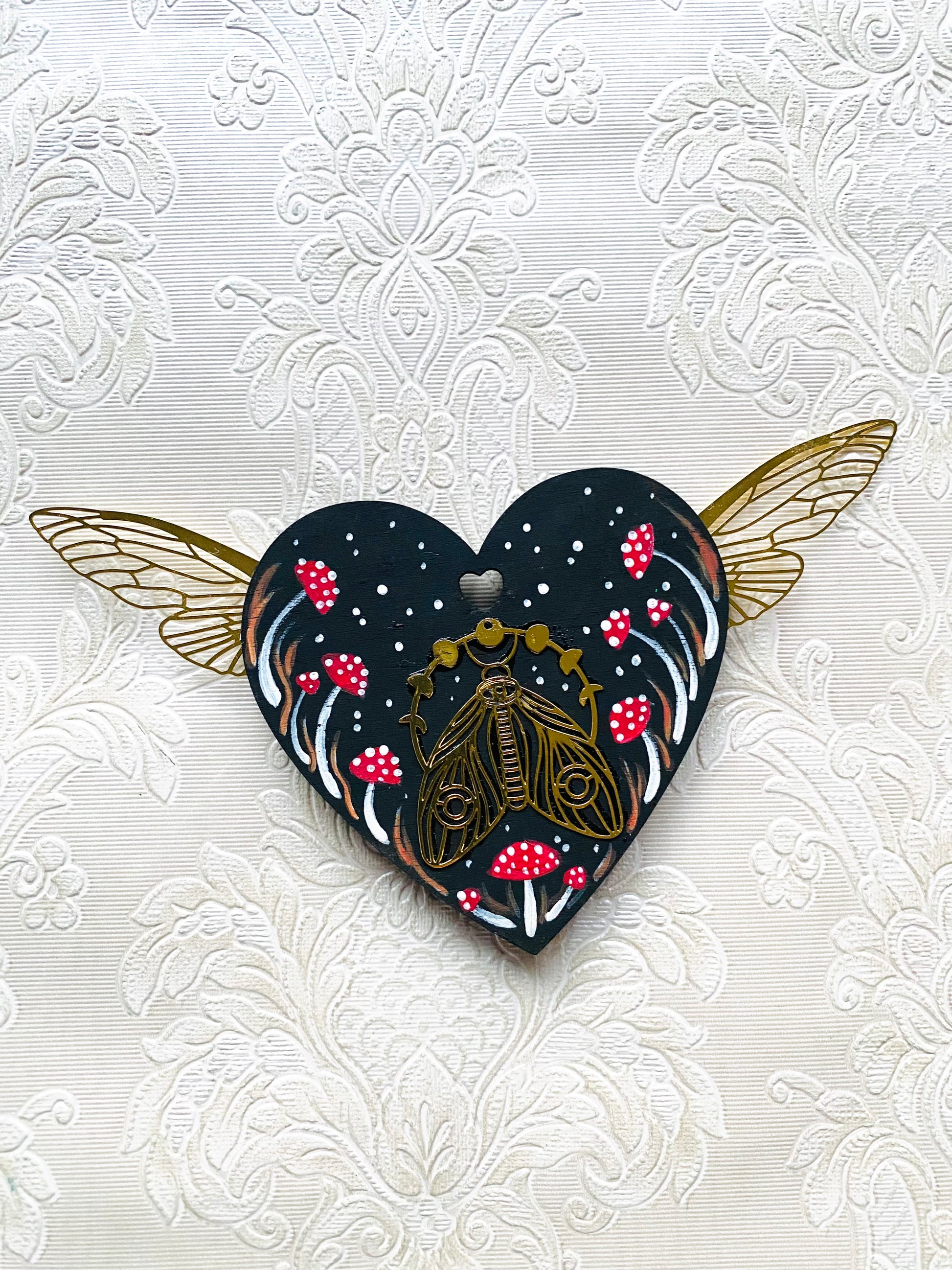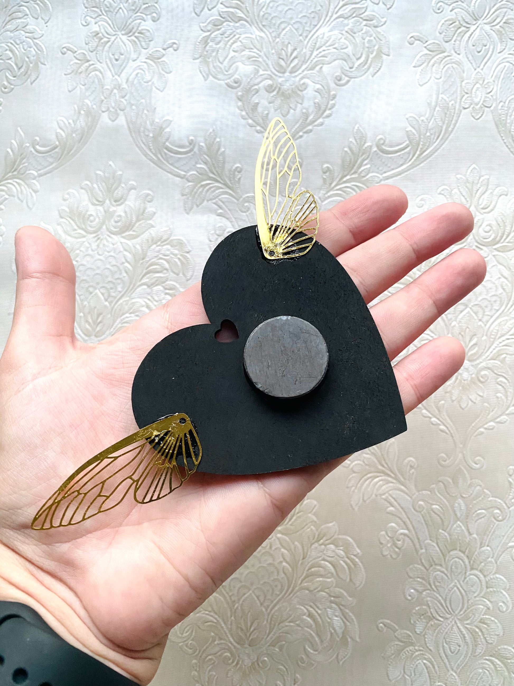 Handbemalter GEFLÜGELTER Mottenherzmagnet / Kézzel festett SZÁRNYAS pillés szívecske mágnes