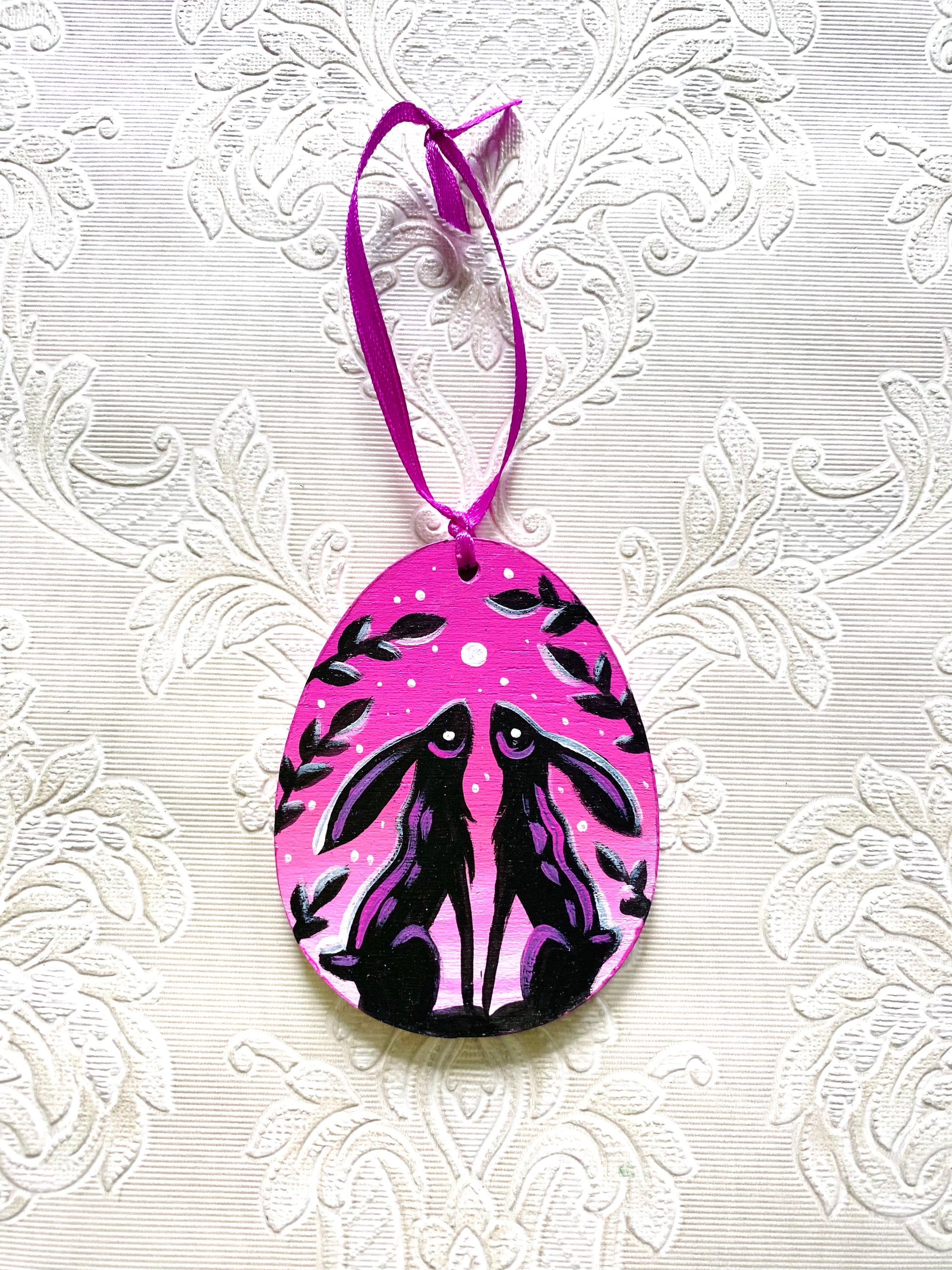 Kézzel festett tojás alakú akasztós dísz. Mérete kb. 5x6 cm. Nem csak húsvétra! :)