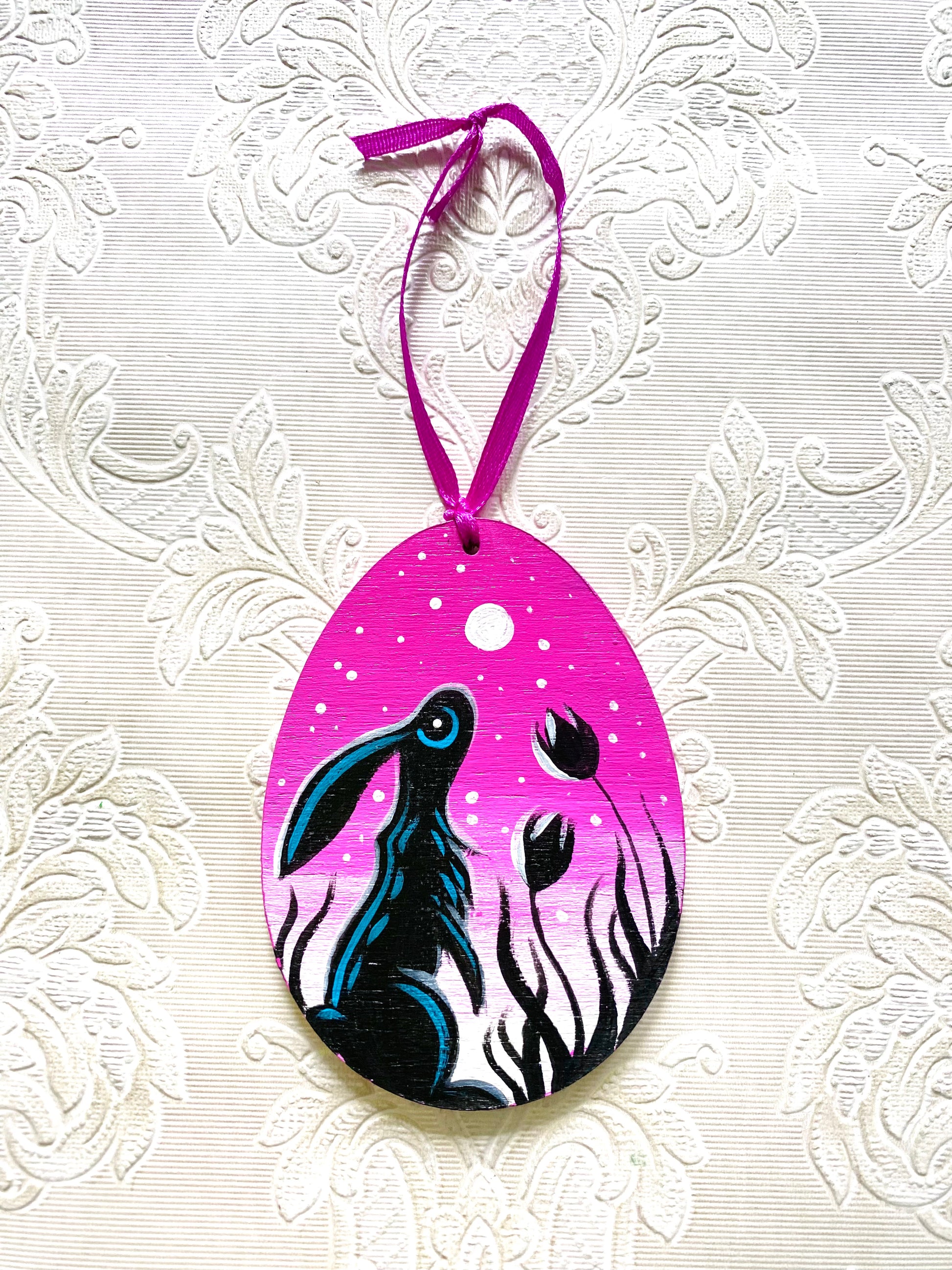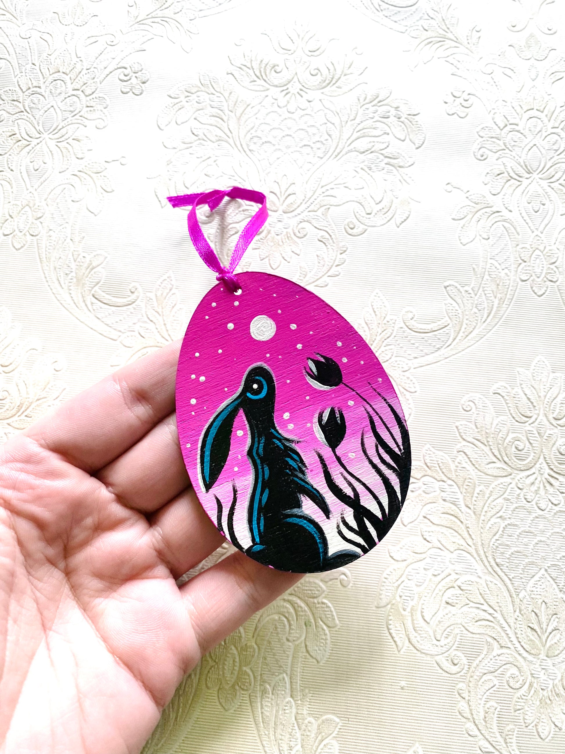 Kézzel festett tojás alakú akasztós dísz. Mérete kb. 5x7 cm. Nem csak húsvétra! :)
