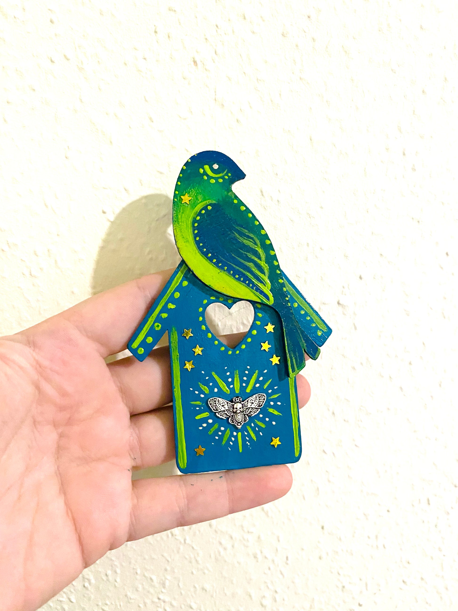 Hand-painted bird house and bird magnet / Kézzel festett házikó madárral mágnes