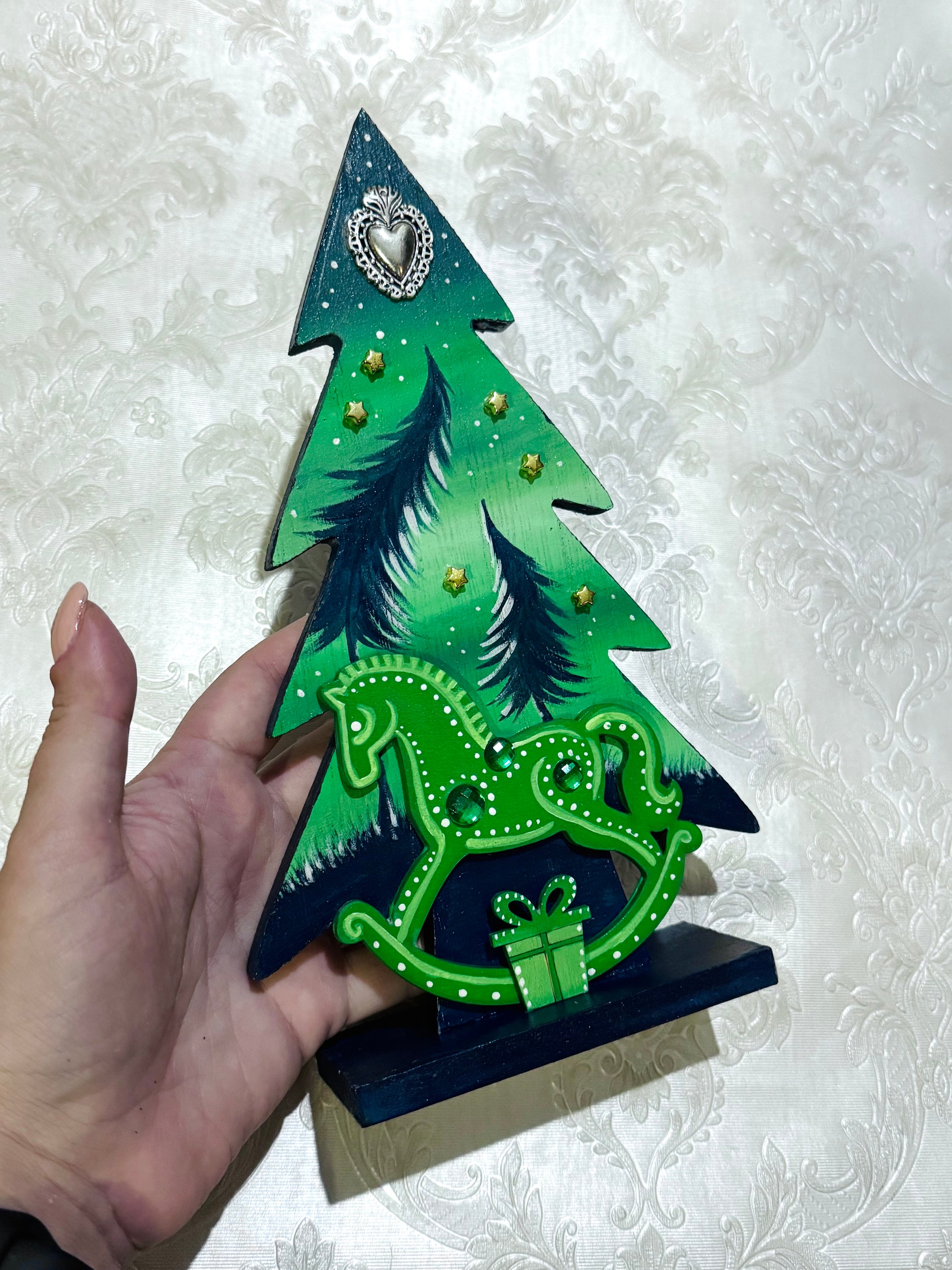 Hand-painted pine tree figurine SMALLER (embellished) / Kézzel festett fenyőfa figura KISEBB (DÍSZÍTETT)